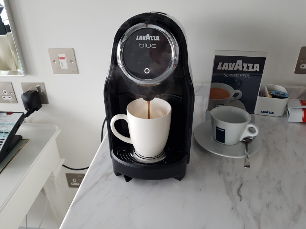 The following morning we elected to explore for breakfast, rather than take the hotel breakfast offerings. During the night we had seen a set of lights and wanted to check them out. Behind the hotel is the Shepherds Bush Market and after wandering around and popping into the local shops and grabbing a coffee, we had enough breakfast items to feed us for the whole day. Taking back the food to the room, we got to enjoy the table and chairs as well as the coffee machine for a top up.