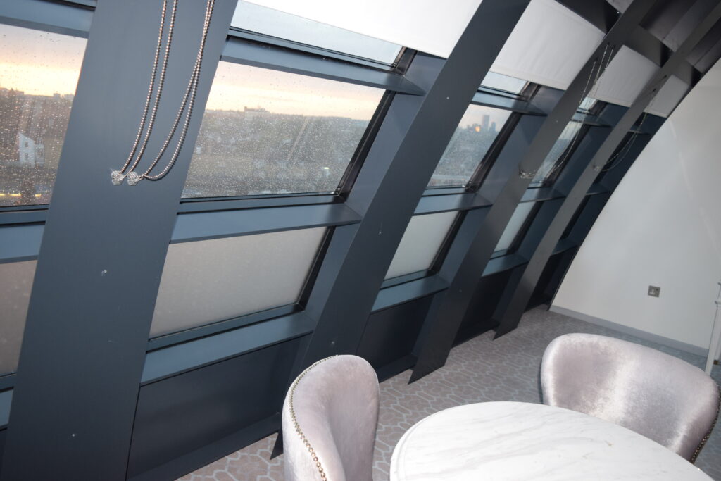 Backtracking towards the living room area, the bathroom was on the left. Another huge space with everything we would need, a big bath and a separate shower cubicle. Again with those wrap around windows, giving amazing views across London, I thought it had the best seat in the house. Everything we were going to need was there, soft towels, gels, lotions and shampoos, we were set.