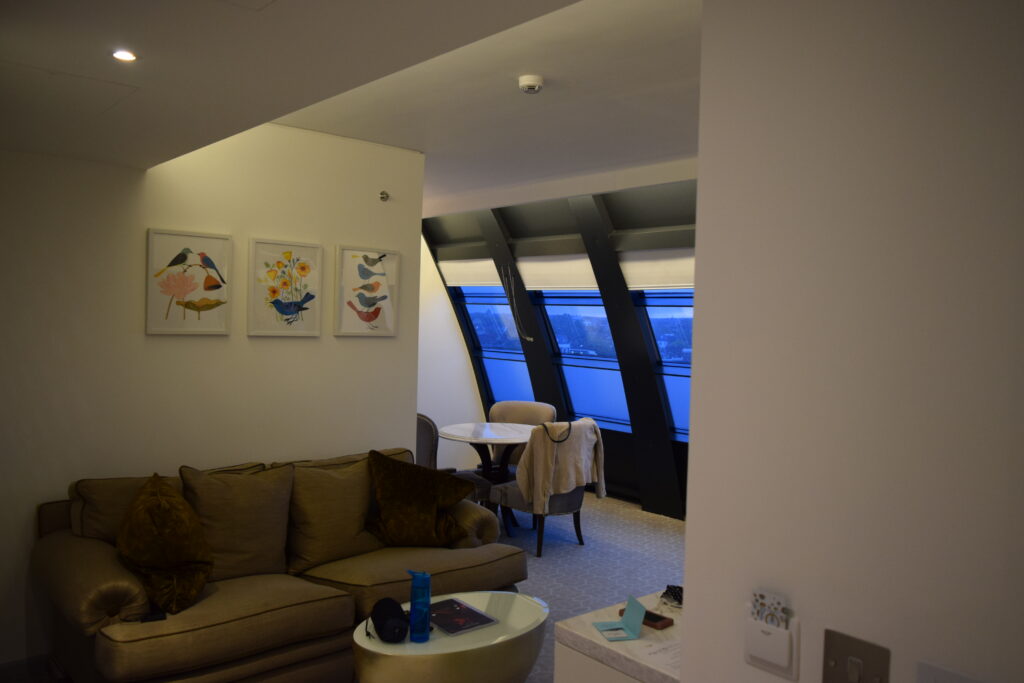The hotel staff were great, even from behind a huge plastic screen, they were polite and very patient as I asked loads of questions about the building. I found out that it was a Grade 2 listed building, that once it was a cinema and bingo hall. It had truly been given another lease of life, the interior was stunning. Checking in was easy, with the staff telling us that we had been given the free upgrade and were in a suite.