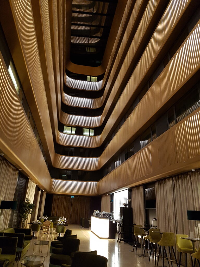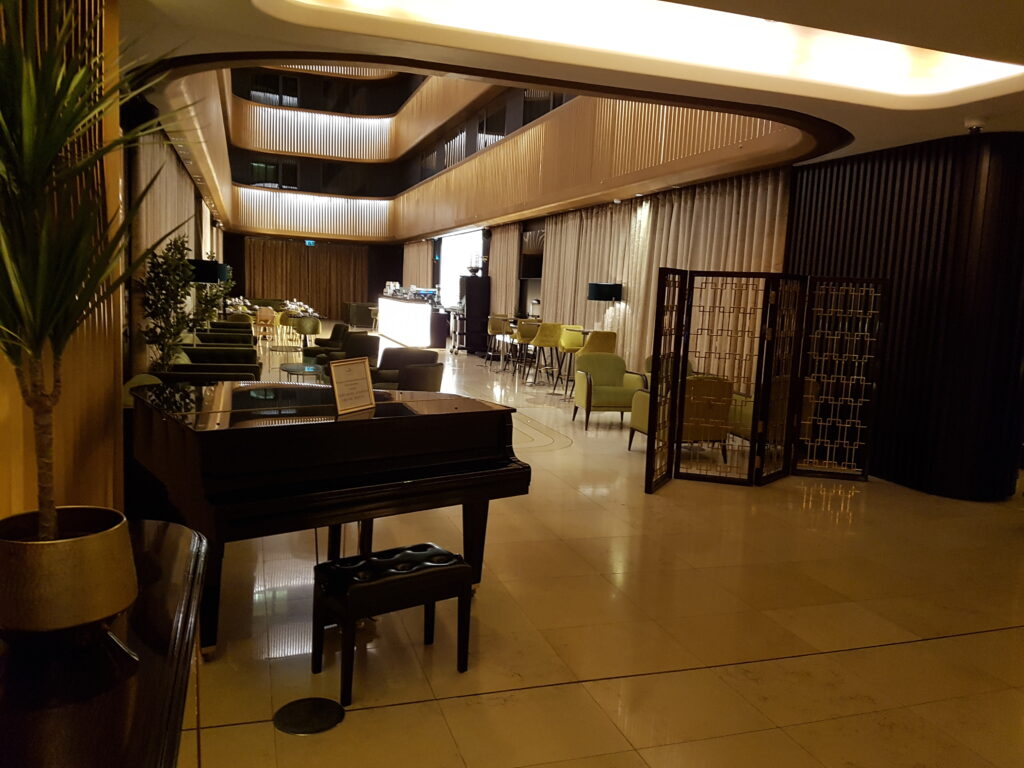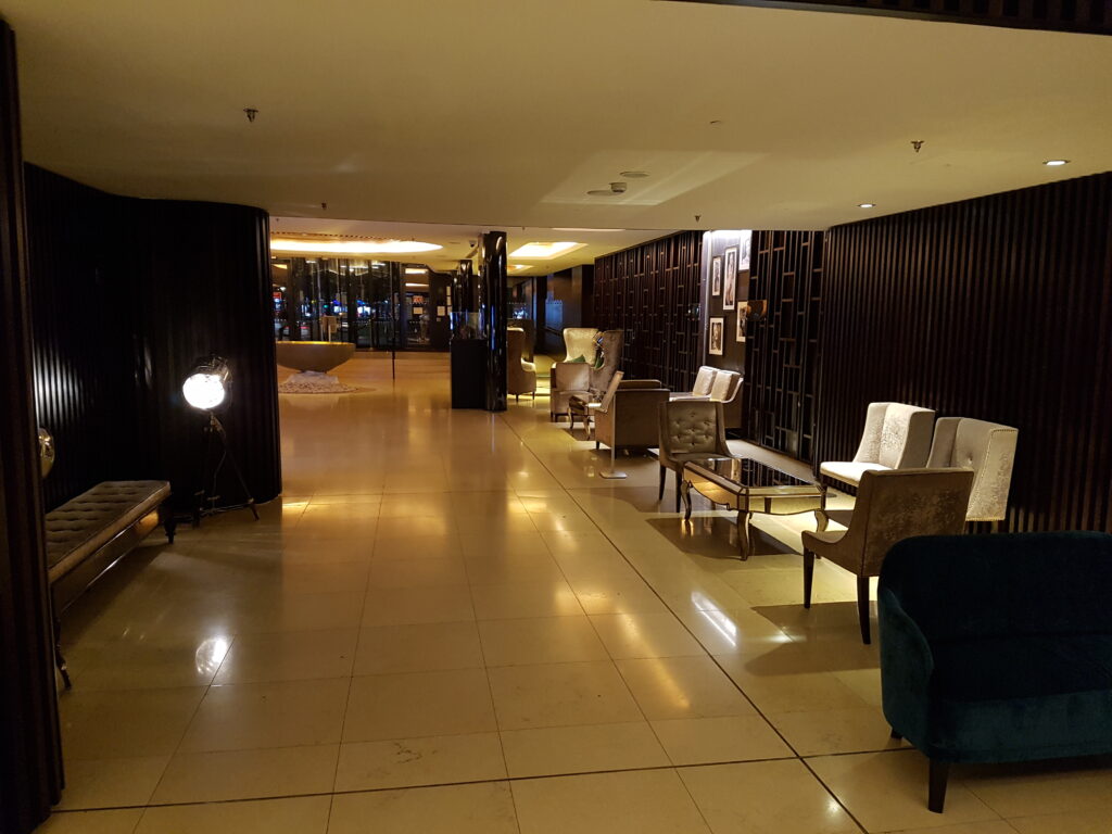 Stood outside the hotel, it is true that I felt a little disappointed. Either side of this beautiful looking building, there was construction going on, with scaffold and boarding hugging both sides of the hotel. However, walking through the glass fronted doors the hotel immediately redeemed itself. Huge, open airy foyer area with mood lighting, it made me forget everything that was going on outside.